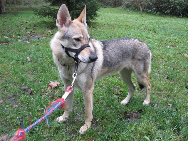 Dneska jsme zase trénovaly chůzi u nohy pomocí haltiny a docela jí to šlo. Když už jsme byly skoro u baráku, tak se rozeběhla a haltina se tou silou přetrhla. Tak mam šití na večer :- /