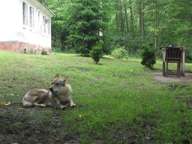 Selmě bude za nedlouho rok a půl a docela poslouchá. Pořád ještě nemáme oplocenou zahradu ale už ji pouštíme na volno. Kolemjdoucích lidí si moc nevšímá. Docela se vyplatilo ji mít celou tu dobu na vodítku, naučila se být pořád u nás.